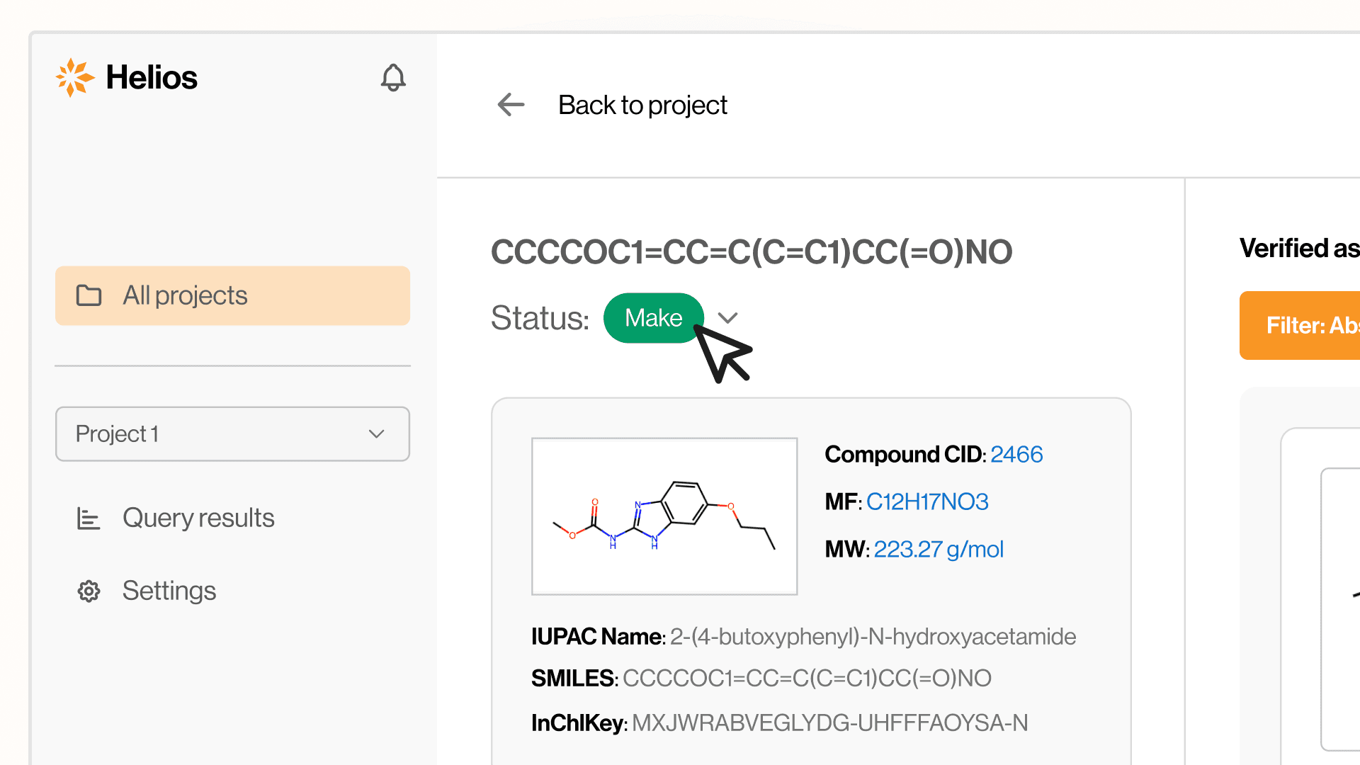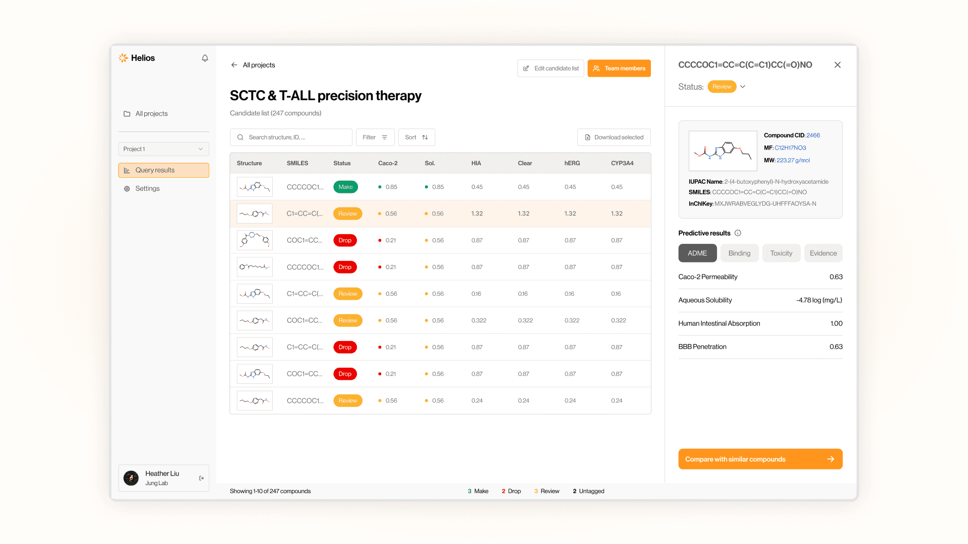 Helios analyzes each compound structure