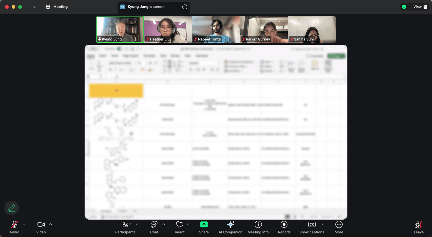 FIG 1. Learning about our design partner's research methods on-call (blurred for confidentiality)